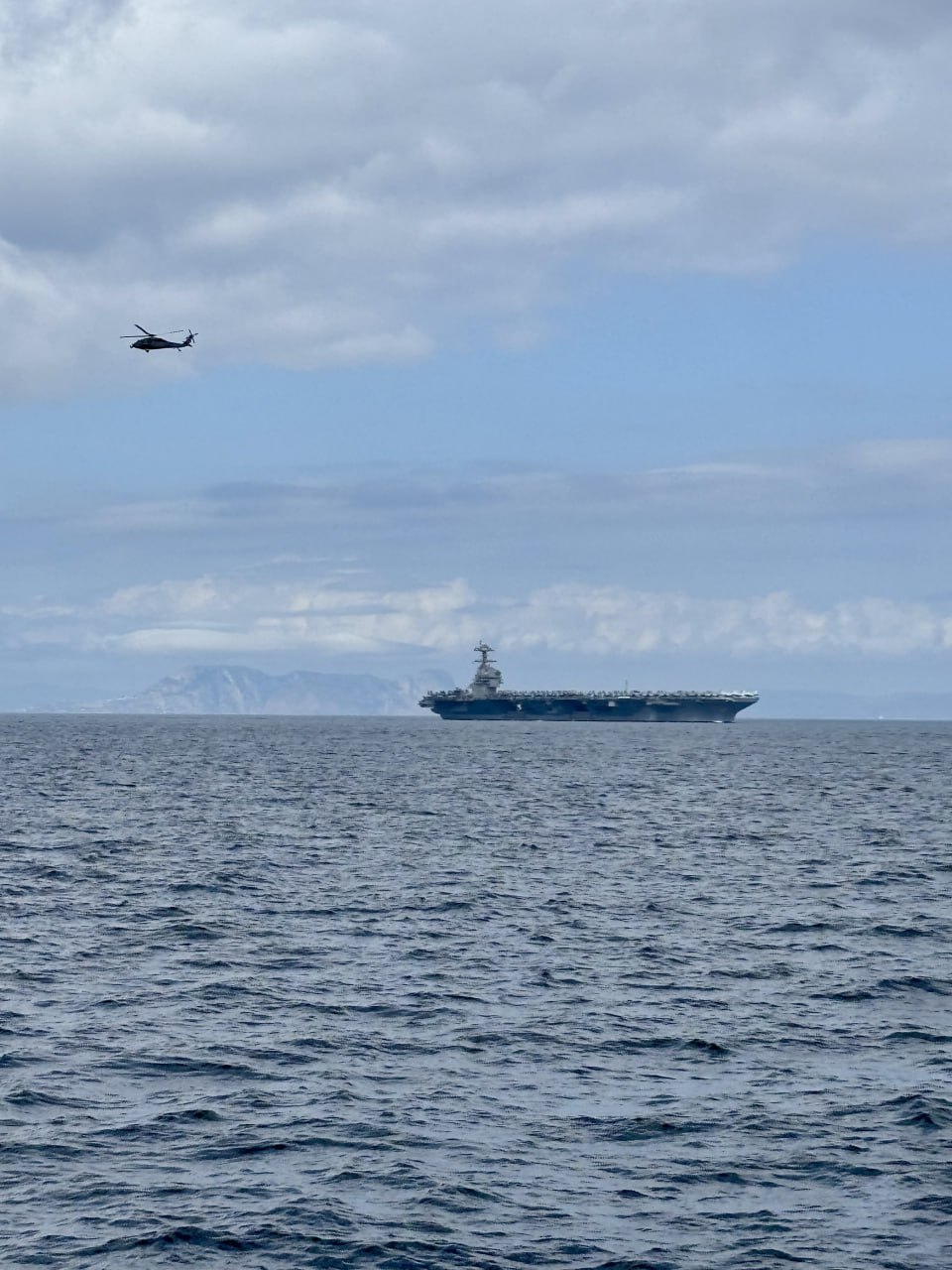 The USS Gerald R. Ford carrier strike group is currently operating in the western Mediterranean Sea, as confirmed on Sunday, October 5, 2025. The strike group is working alongside an Italian Thaon di Revel class patrol vessel.