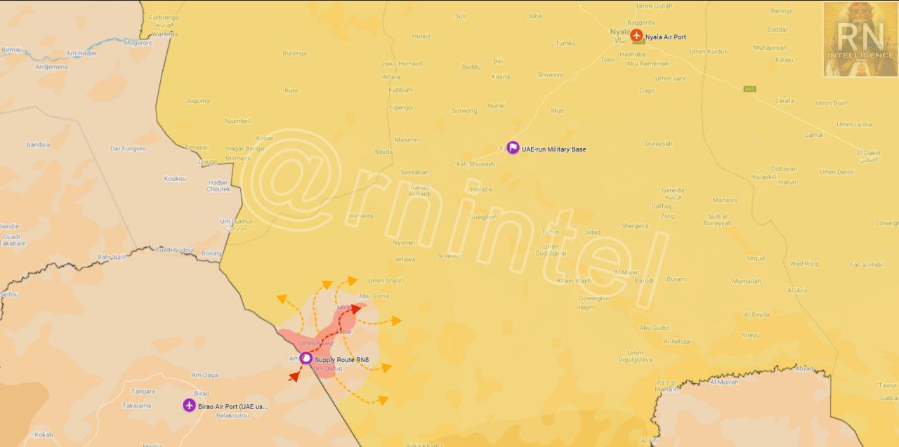 The reasons behind Wagner"s operation in the region remain unclear. The group had previously withdrawn its open support of RSF in 2021, allowing Moscow to establish ties with the Iran-backed Sudanese government. The area of Wagner"s activity is significant for RSF, as it is a critical route for military aid flowing from the United Arab Emirates via cargo planes landing at Birao Air Port in CAR. This aid is transported into Sudan using route RN8, which is vital for the ongoing Battle of al-Fashir, supplying two key RSF airbases located at Durri and Zalingei.