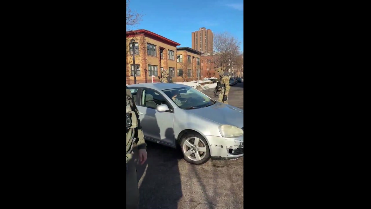 Video: Footage shows a person intentionally trying to block-in Border Patrol agents with a silver Jetta in Minneapolis. The citizen, who emerged from a residential building, screamed at Border Patrol to release a person from custody, using profanity and telling them to kill themselves. The citizen then drove the silver Jetta into the middle of the intersection, temporarily blocking the agents until they warned the citizen to move the vehicle.